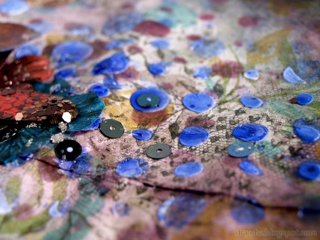 Base of that page is rather light/pastel paper by Prima... I color it so much but pattern is still visible and page looks more interesting than if I had used a single-color plain paper.